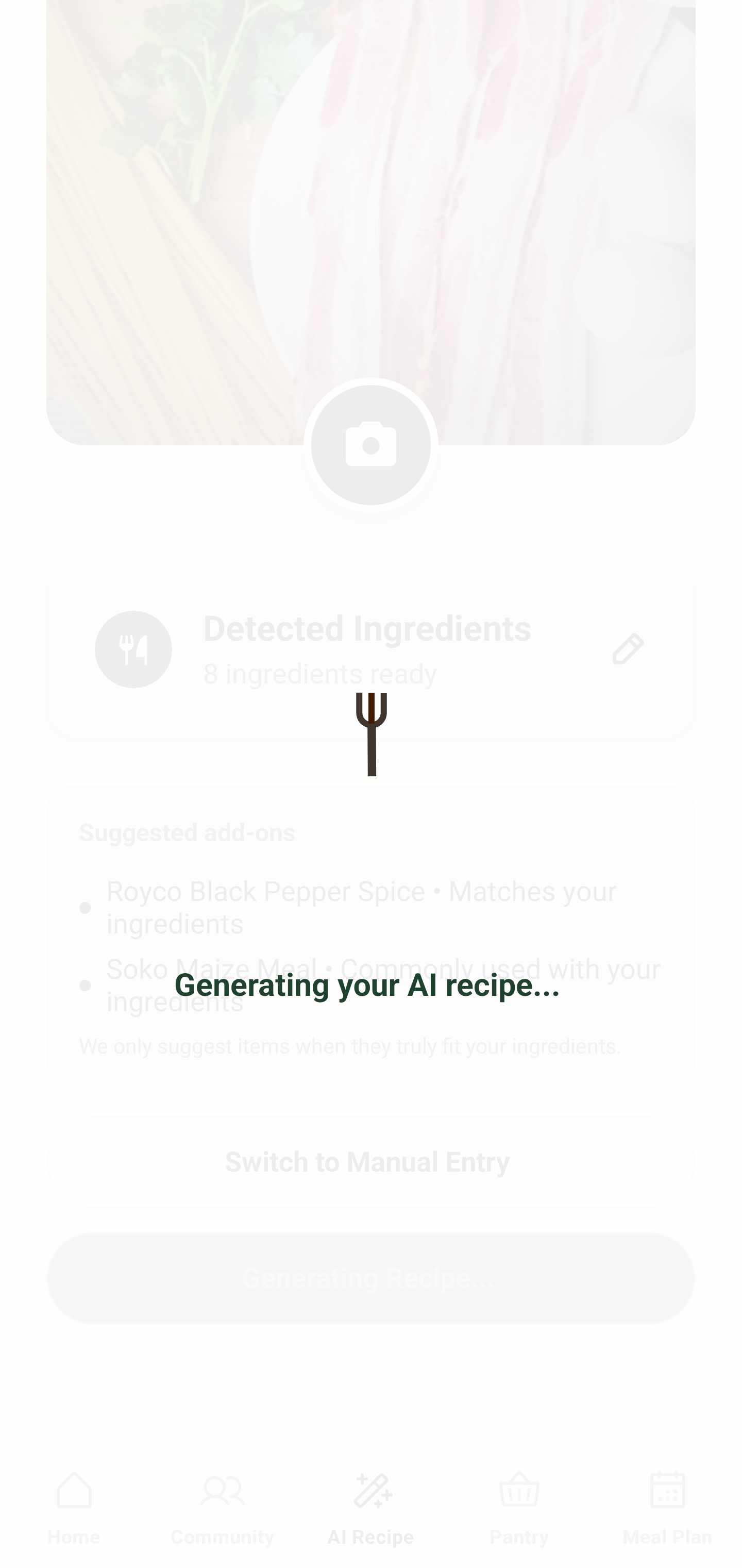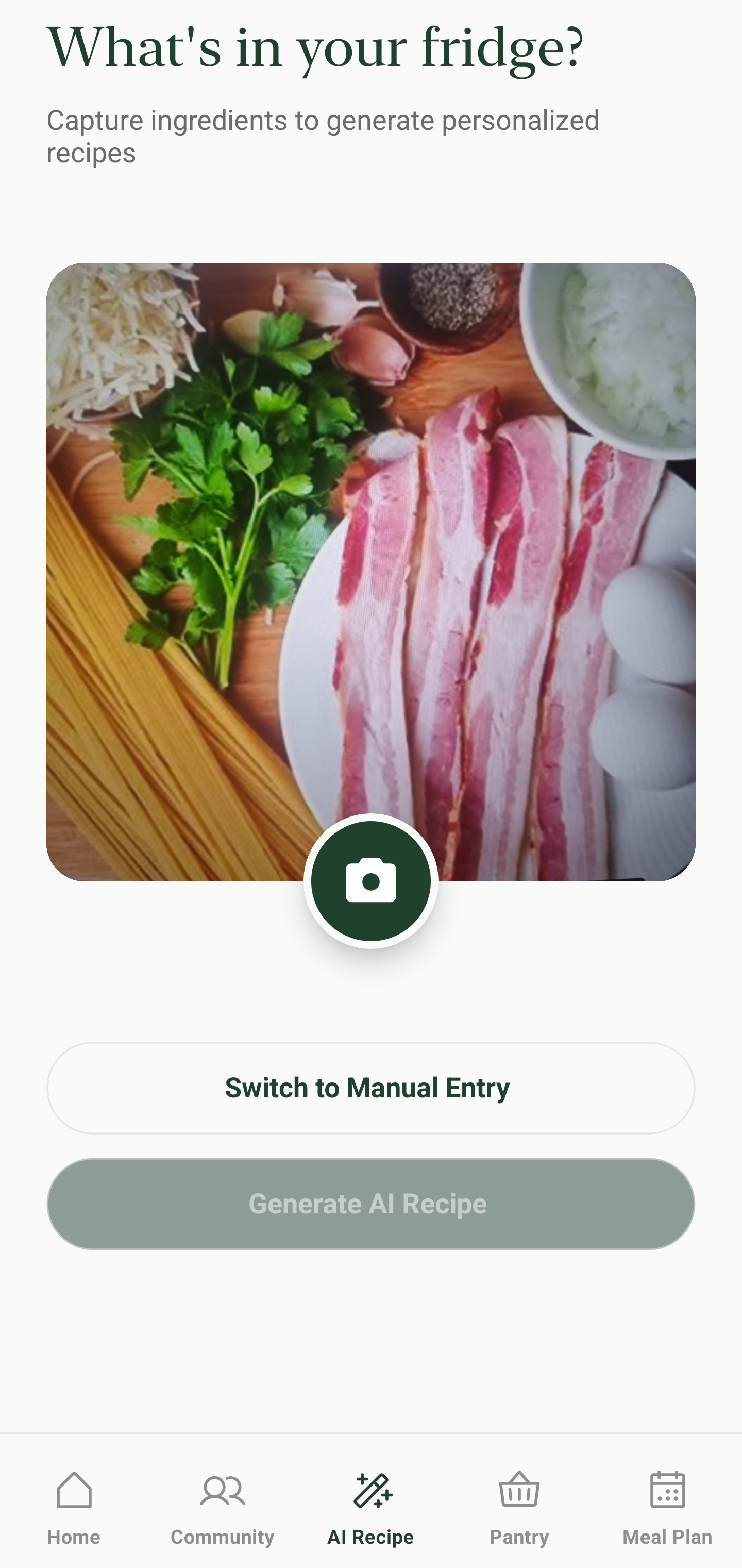 Your smart kitchen companion that gives you recipe recommendations. Snap photos of your ingredients and get instant AI-powered recipes based on what you have.